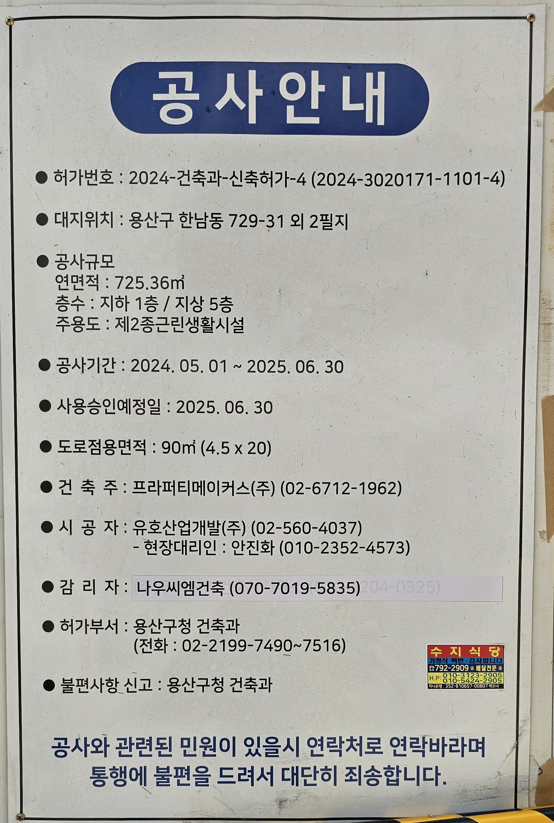 서울시 용산구 한남동 729-31 외 2필지 신축공사 (24년 6월)